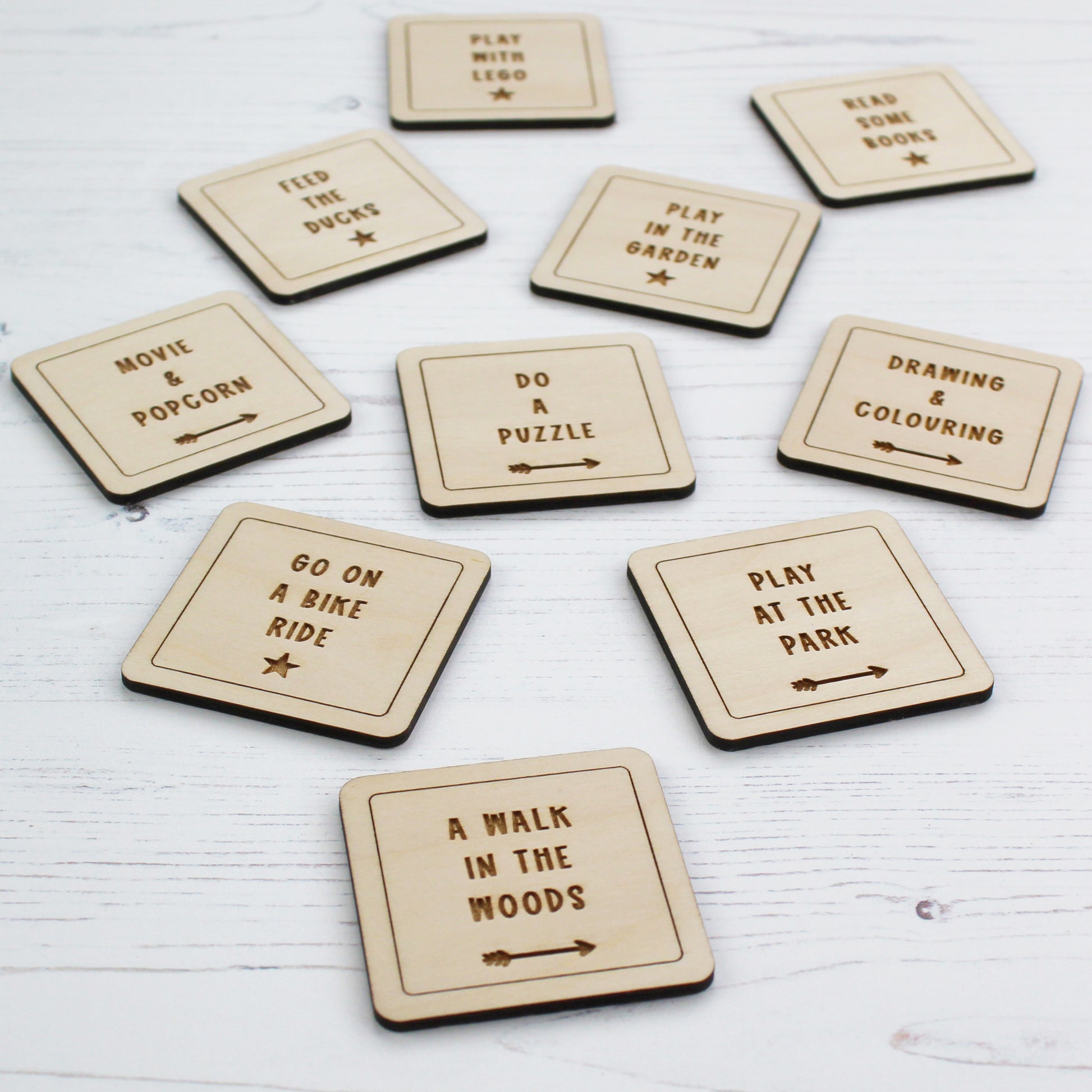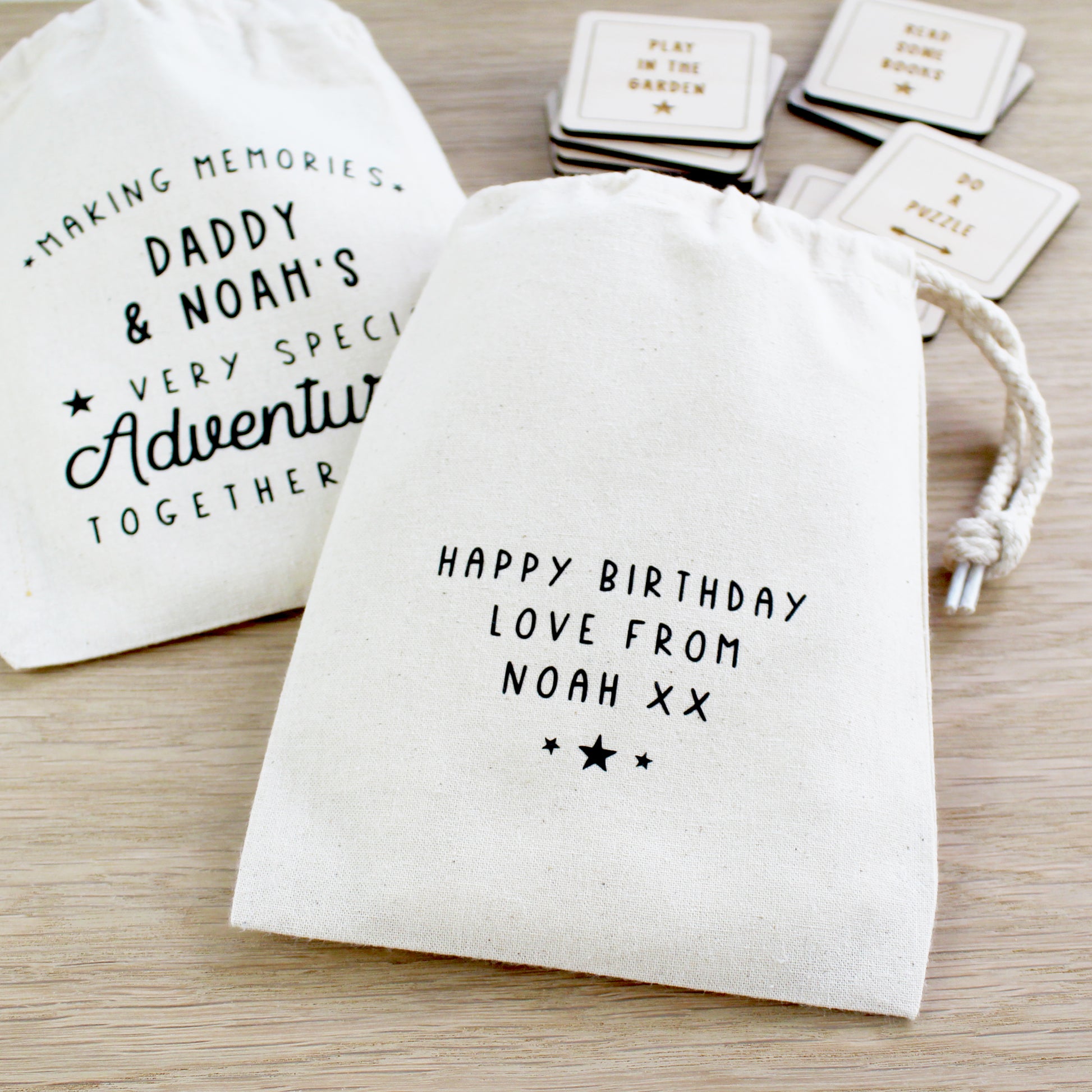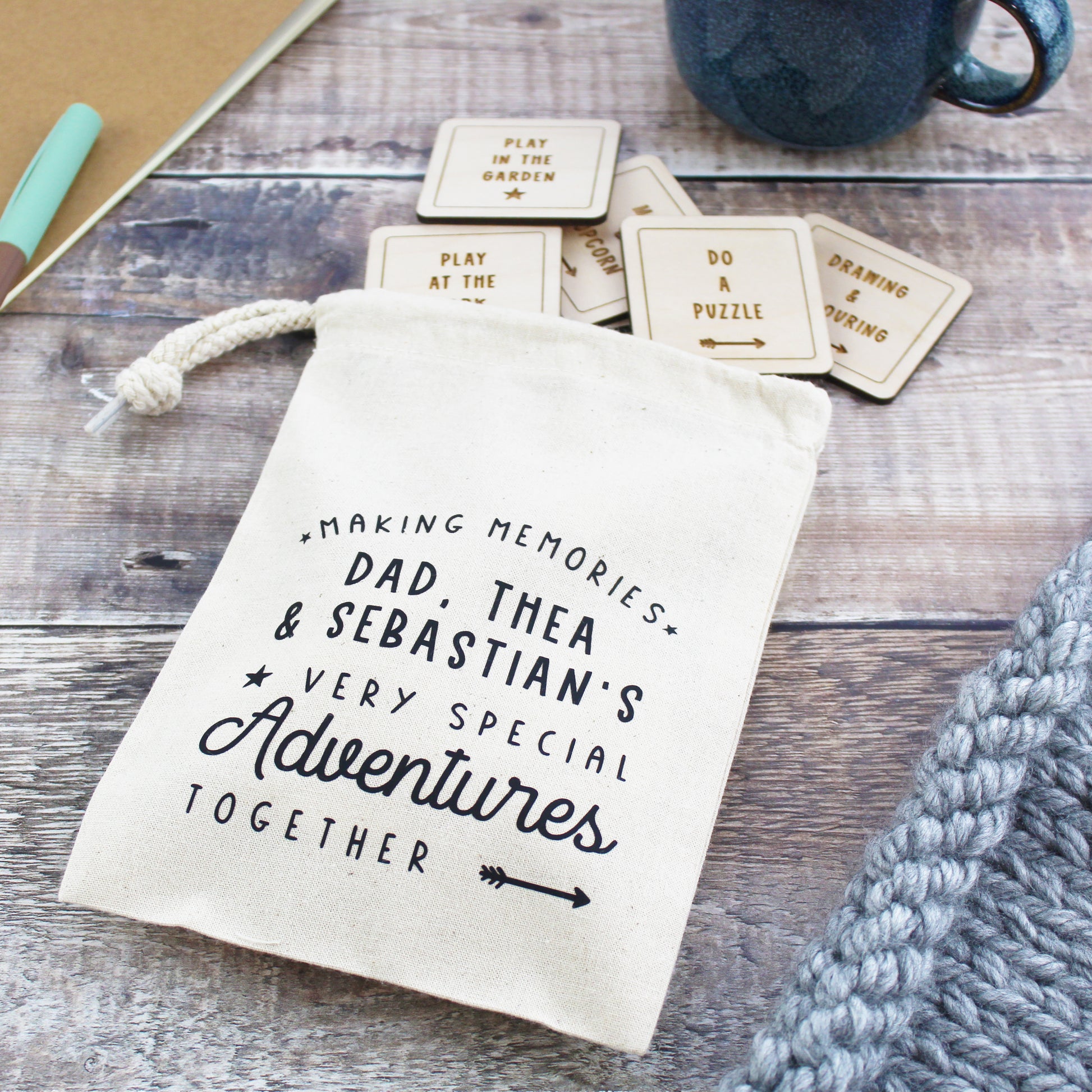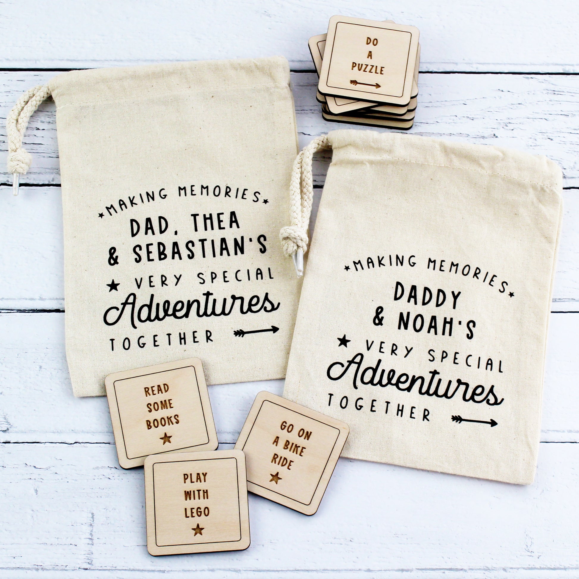 A great way to encourage making memories, this gorgeous set of wooden tokens are each personalised with an adventure of your choice. A fun way for Daddy and child to choose what to do when spending time together and/or to help remember their best adventures.