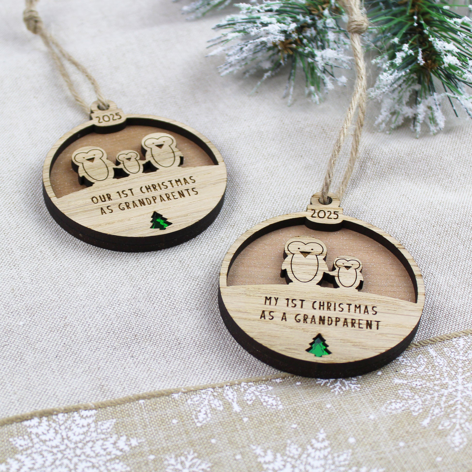 This personalised First Christmas As Grandparents Decoration will make a fantastic Christmas gift for all of the new Grandma's and Grandad's!