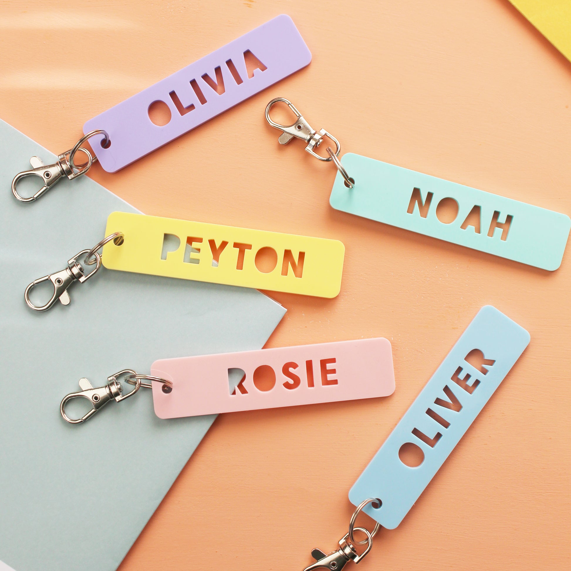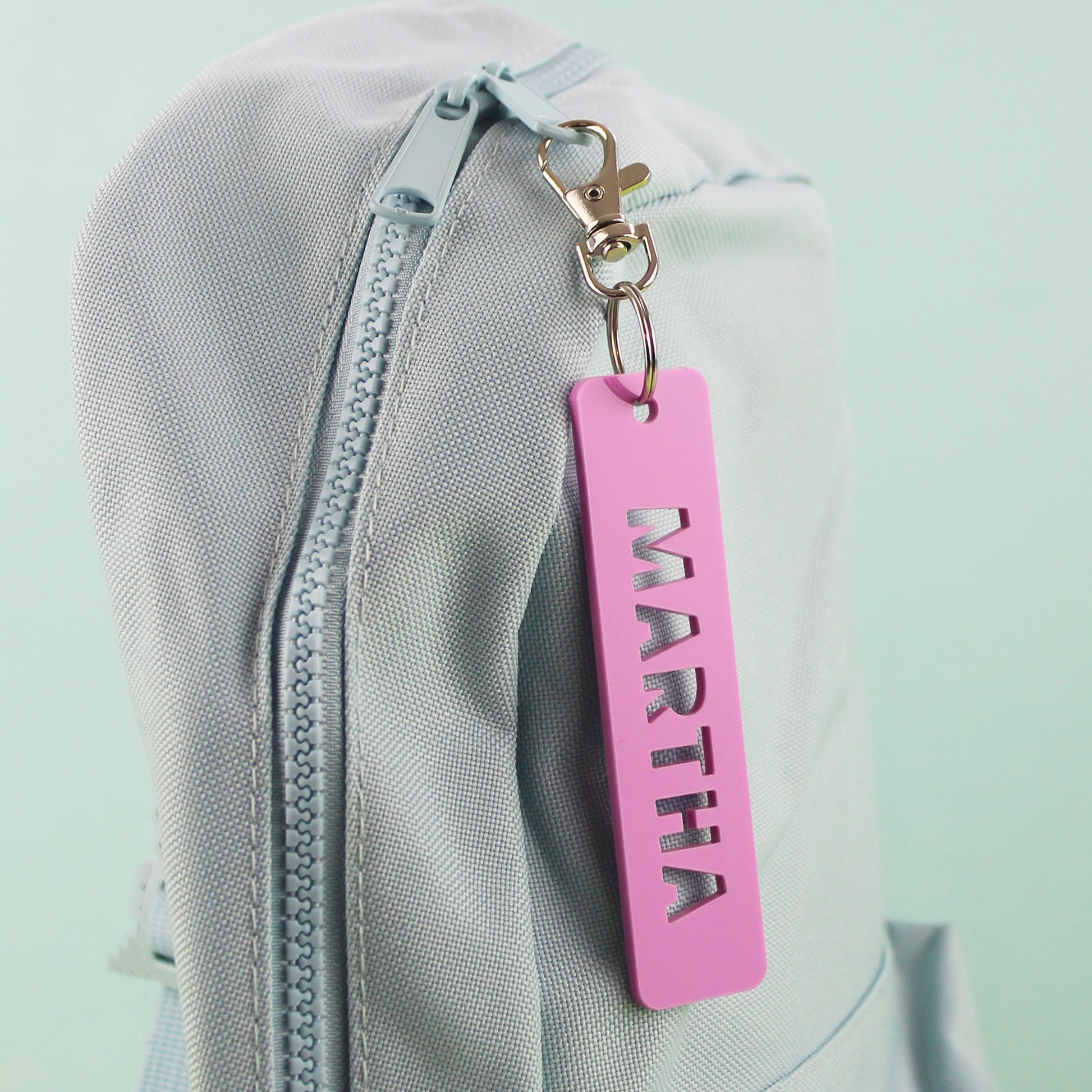The bold design and choice of colours make this a very trendy and eye-catching accessory for any bag. Personalised with your name so you will always know which bag is yours!