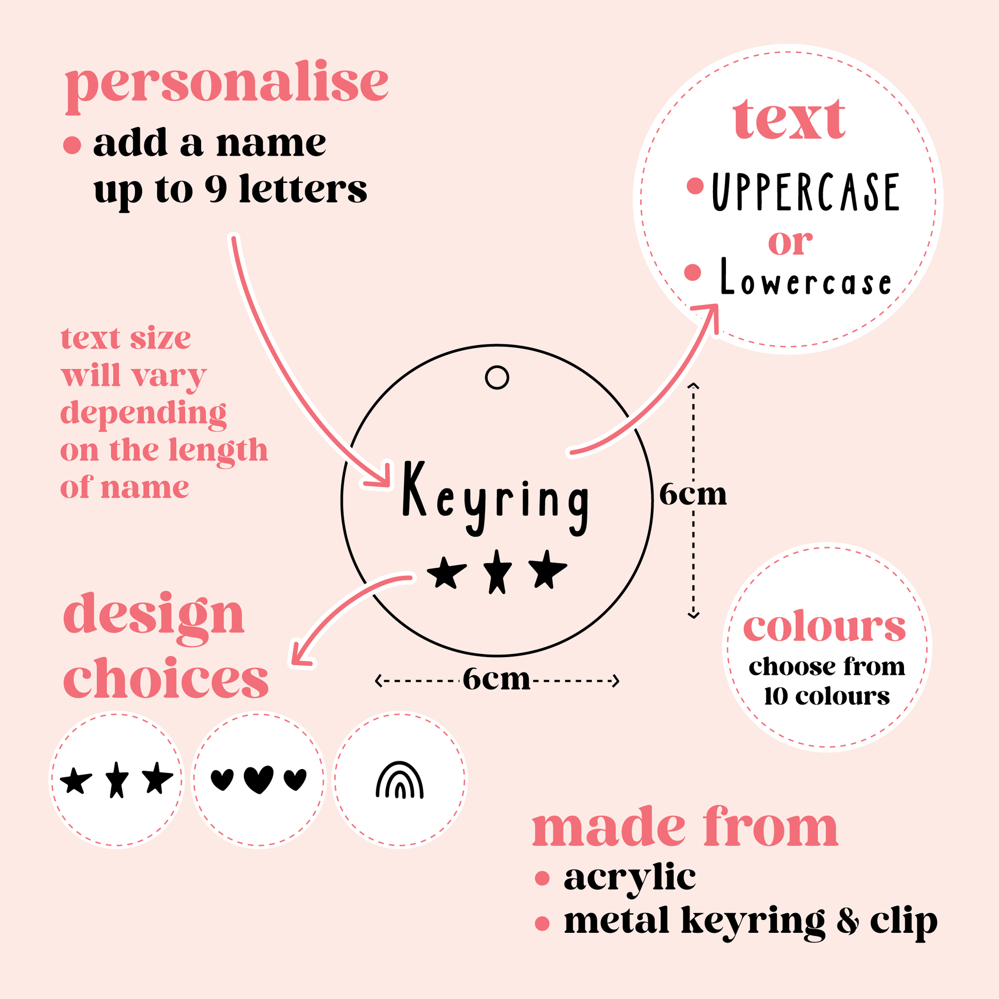 Add the cutest touch to any bag with our round personalised acrylic keyrings!