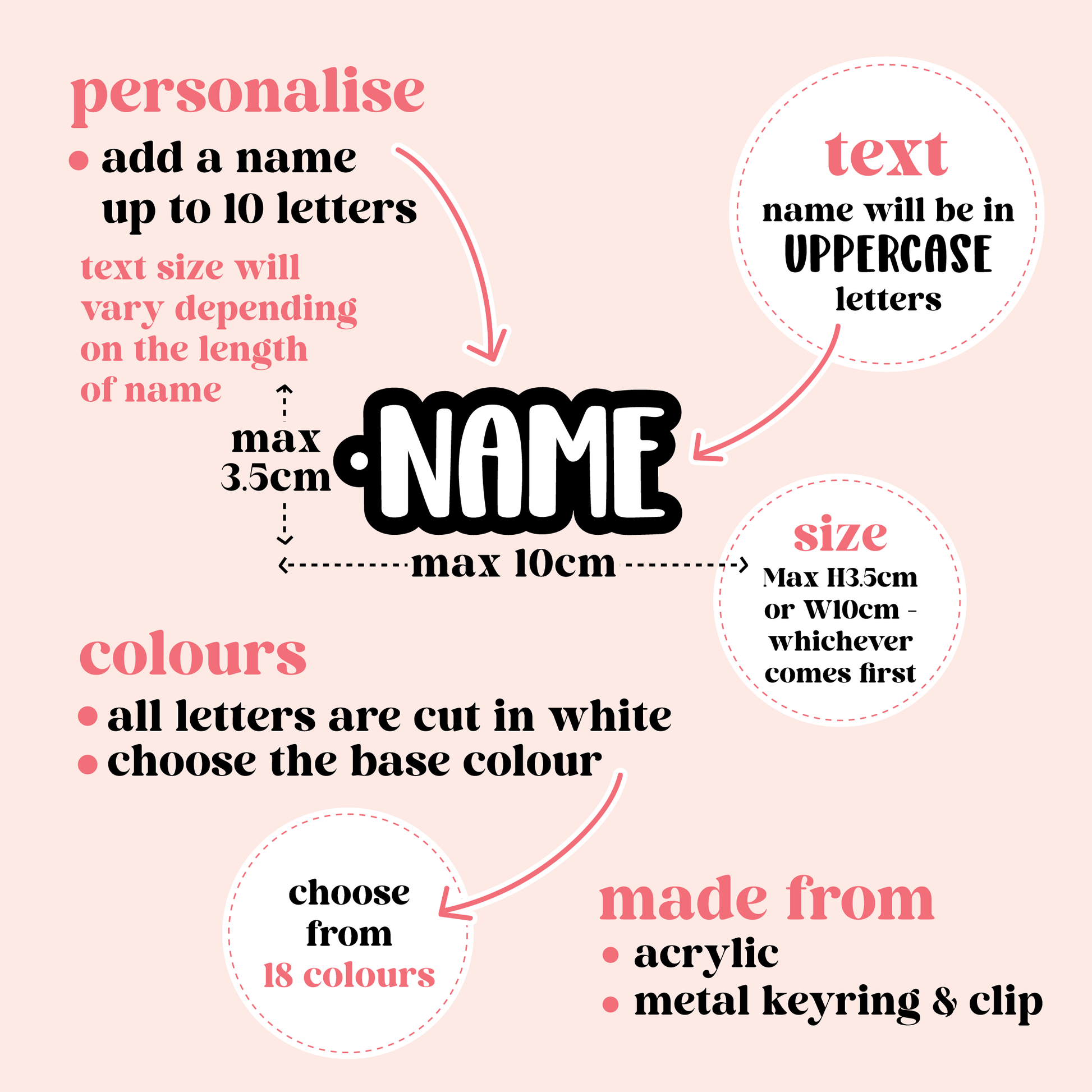Choose your favourite colour for the base, and personalise with any name which will be cut from white acrylic.