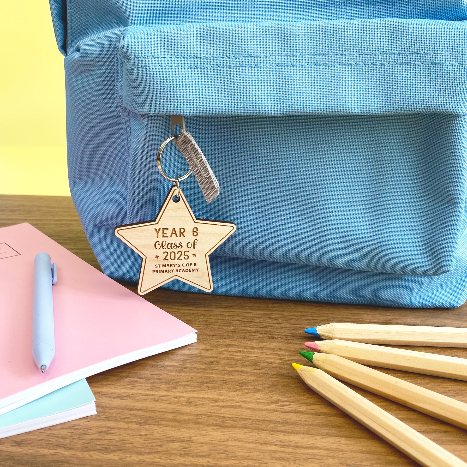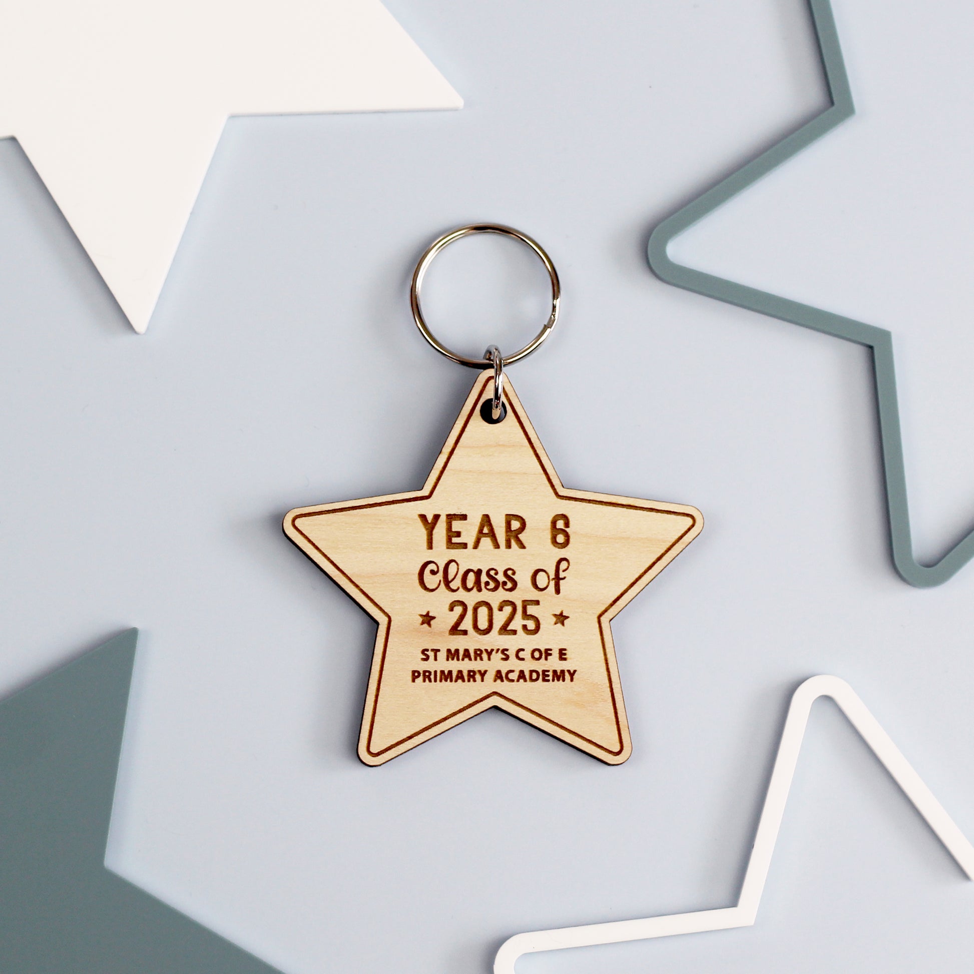 Congratulations class of 2025! This wooden star keyring makes a super little keepsake gift for your year 6 leaver!